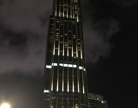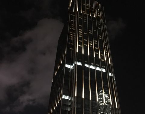 在尖沙咀崇光百货的地下人行通道中,见到一个出口指向Victoria Dockside。随后,白天晚上,在星光大道、中间道儿童游乐场等各个方向,都能见到这座大楼挺拔的身姿。以维多利亚港为背景,大楼内有写字楼、酒店、艺术设计等,正在建设中。
