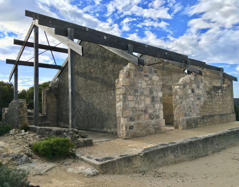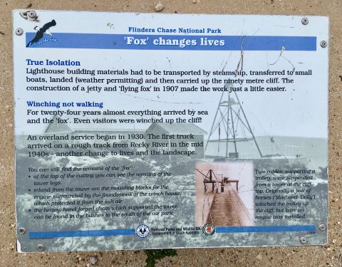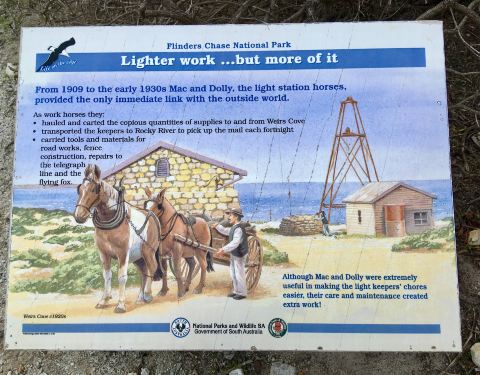 堰湾 Weirs Cove 位于袋鼠岛弗林德斯 • 蔡斯国家公园的西南角,库艾迪克角灯塔 Cape du Couedic Lighthouse的东侧。 堰湾是库艾迪克角灯塔早期没有陆路交通时的物资登陆地点。1907 年时在此处建造了一个码头,以及被称作“飞狐 Flying Fox”的陡峭悬崖滑轮系统,悬崖之上建有存放物品的仓库。 从 1907 年至 1930 年代初的 24 年间,当时提供给灯塔守护者及其家属的所有物资,从食物到燃料,以及灯塔所用燃料等,全部从海上通过轮船运往这里后转移至一个个小船,待天气好时再着陆,由悬崖滑轮系统传送至 90 米高的悬崖之上,当时,甚至游客也是从这里上来的。 物资的补给是每三个月或更长时间一次,而此处离库艾迪克角灯塔有 3 公里距离,灯塔守护者及其家属(共有 3 户家庭)则分别住在灯塔北侧的3栋小屋内,将物资从堰湾的物品仓库运至灯塔附近的家属区,全靠两匹名为麦克 Mac 和多莉 Dolly的马匹,麦克和多莉两匹马从 1909 年灯塔正式启用至1930 年代初,一直充当着这种运输使者,同时还包括每两周一次将灯塔守护者送到洛基河 Rocky River那里收发信件等。 来到堰湾,了解了这一切,你会沉浸在当时灯塔看守人的工作生活中,那是怎样的辛苦乏味,而且与世隔绝。 1930年开始堰湾有了陆路交通,1940年代中期,在崎岖不平的土路上从洛基河开来了第一辆卡车,这是堰湾从“飞狐”悬崖滑轮系统以来的又一变化。 我们从阿德莱德自行坐船去的袋鼠岛,在岛上呆了三天两夜,上岛租的车,住在金斯科特 Kingscote 的 Far Away Escape 民宿。第一天去了威洛比角保护公园Cape Willoughby Conservation Park 以及美洲河American River一带;第二天从海豹湾出发,然后小撒哈拉沙漠、微风湾、汉森湾,一路来到弗林德斯蔡斯国家公园;第三天去了金斯科特Kingscote、鸸鹋湾薰衣草花田 Emu Bay Lavender Farm,以及彭纳肖Penneshaw 一带,玩得很尽兴! 图1:堰湾观景台拍摄的堰湾;图2:遥望西侧3公里外的库艾迪克角灯塔近在眼前-右后方还可见3栋灯塔守护者小屋;图3:往西南角望去-俩兄弟岛全部收进-右侧是库艾迪克角灯塔;图4:从悬崖上方俯瞰堰湾码头-码头一边悬崖滑轮系统的塔架残骸依稀可见;图5:堰湾悬崖之上的仓库遗址-石墙使仓库保持相对凉爽;图6:仓库的最后一间有3扇门-说明里面贮存的物品分别供3户家庭所用;图7:运输队员麦克和多莉两匹马虽然给灯塔守护者带来了方便-但马匹的饲养和护理同样也增加了他们的额外工作;图8-9:悬崖滑轮系统照片示意图。