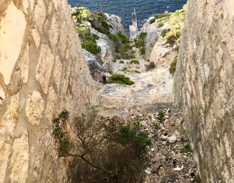 全部从海上通过轮船运往这里后转移至一个个小船,待天气好时再着陆,由悬崖滑轮系统传送至 90 米...