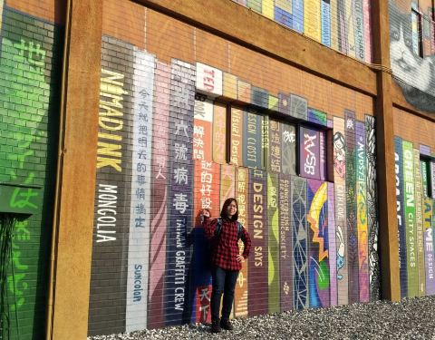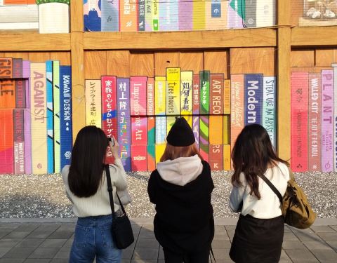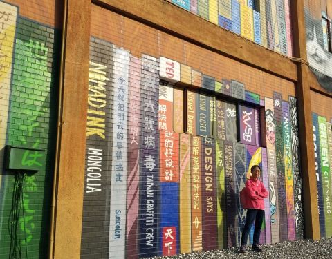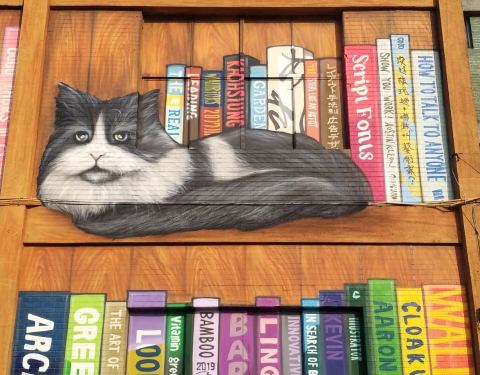 是他充满了特色的壁画而來的,就在村口入口位置,就是一副佈滿整个牆身都是書架的壁画,最是引人吸睛...