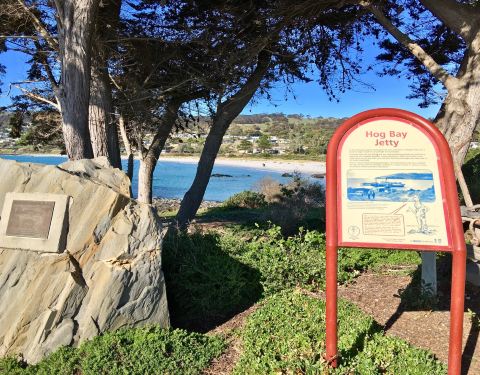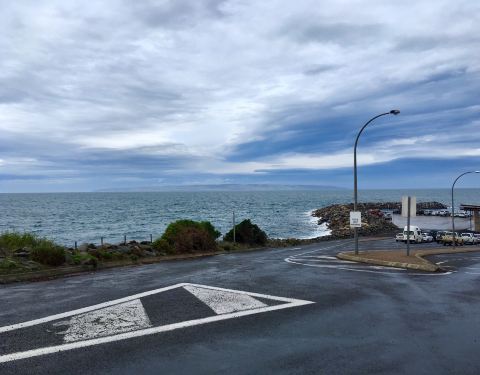 潘尼萧海滩 Penneshaw Beach 就在潘尼萧码头旁边,位于码头的东南侧。潘尼萧码头是从阿德莱德坐船去袋鼠岛的登陆码头。 海联公司拥有两艘渡轮,分别是 SeaLion 2000 和 Spirit of Kangaroo Island,在阿德莱德以南的杰维斯角 Cape Jevis 码头和袋鼠岛的潘尼萧 Penneshaw 码头之间来回运行。两码头之间距离约18.6公里,航行45分钟。 潘尼萧海滩东侧的海湾是豪格湾Hog Bay,这一带可是观看日出的绝佳位置。潘尼萧企鹅中心就在海滩的西北侧,晚上可以看到小企鹅归巢,这里的小企鹅跟维多利亚州菲利普岛的是一样的品种,是世界上最小的企鹅。 不过,白天的海滩没什么游客,大家一上岛便赶着去那些个知名景点,再回来时也就是坐船回阿德莱德了,在这停留的人不多,当然,除非住在附近一带哦。 我们在袋鼠岛上呆了三天两夜。上岛后租的车,住在金斯科特的 Far Away Escape 民宿。第一天去了威洛比角保护公园、美洲河,以及克利福德蜂蜜农场和鸸鹋岭桉树油提炼厂;第二天从海豹湾出发,然后小撒哈拉沙漠、微风湾、汉森湾,一路来到弗林德斯蔡斯国家公园;第三天去了金斯科特、鸸鹋湾薰衣草花田,以及潘尼萧一带,玩得很尽兴! 图1-2:潘尼萧海滩位于潘尼萧码头东南侧; 图3: 潘尼萧海滩东侧的海湾是豪格湾Hog Bay; 图4-6:袋鼠岛东北侧的潘尼萧码头一带; 图7-10:潘尼萧码头北侧一带; 图11:潘尼萧码头候船室拍摄的窗外晚霞; 图12:潘尼萧码头附近带有袋鼠图案的墙砖。