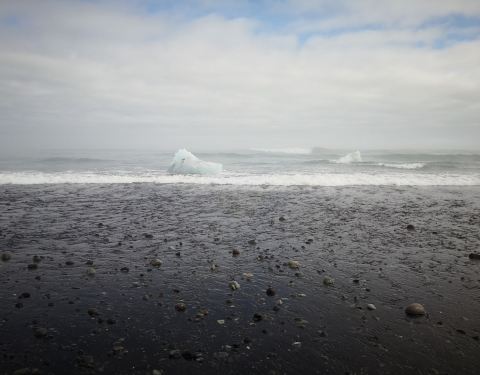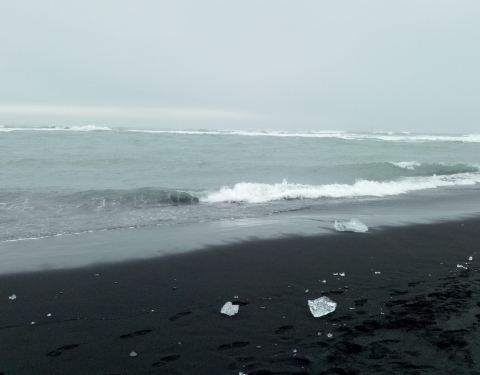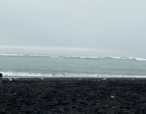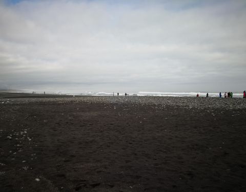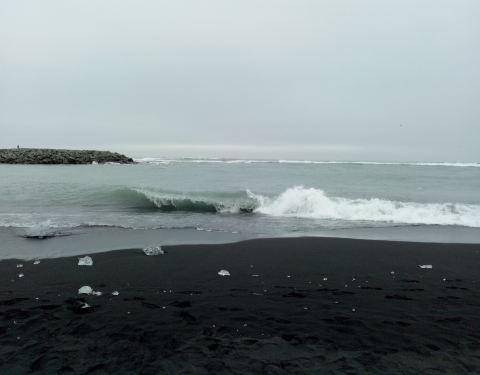 与冰河湖在同一个区域,冰河湖流向大西洋的冰和水就经过此。沙滩上留有大大小小不少冰块。沙子很细节,其实就是特别细小的沙石。尽管风不是很大,但海浪不低。