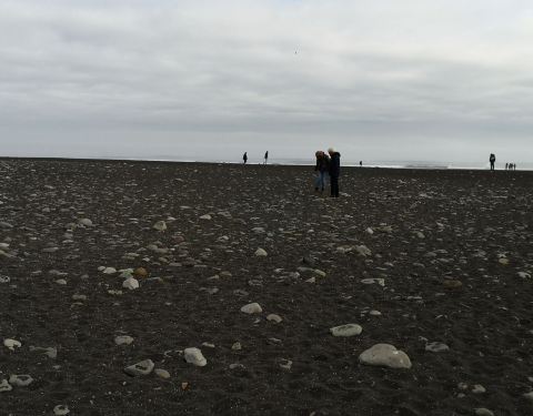 很美的一个黑沙滩,我们去的时候风大浪大,海面还漂浮着大的冰山,沙滩上的钻石并不多,逆时针环游时...