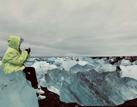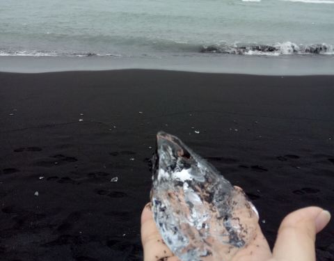 比孤独更孤独的地方,是这个钻石沙滩。 冰河湖里碎落的冰块,被海浪不停的送到这片沙滩上。黑色的沙砾,蓝色的冰晶,在阳光下就像一颗颗闪耀的钻石。 捡一颗冰晶钻石,尝一口千年老冰,入口,顺~