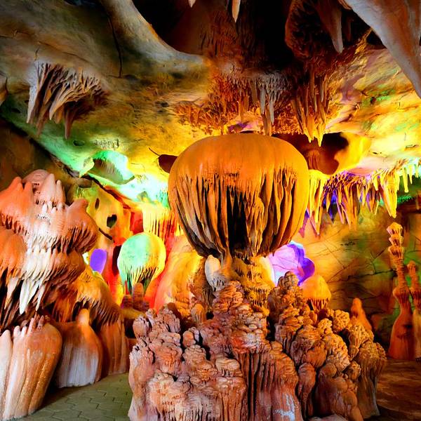 一个规模比较大的喀斯特溶洞,内部冬暖夏凉,里面有各种形状怪异的钟乳石,在灯光映衬下显得非常奇幻、漂亮