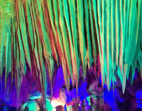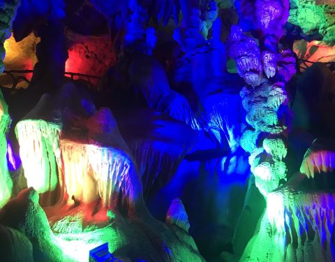 这是黄果树景区附近新开发的一处景点,一个规模比较大的喀斯特溶洞,内部冬暖夏凉,里面有各种形状怪异的钟乳石,在灯光映衬下显得非常奇幻、漂亮。