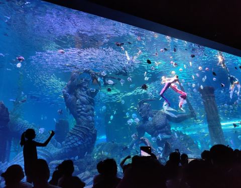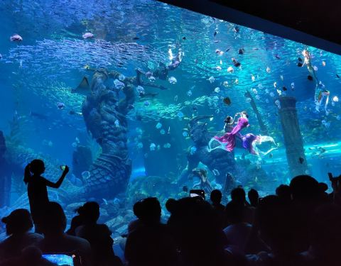 海豚表演很好看,小朋友特别喜欢。人鱼表演,海底喂食秀很好看,表演时间不长。八点半开门,去的早人比较少