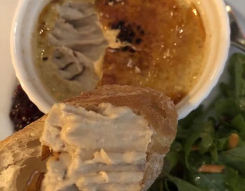 这个馆子菜很好吃门口有克林顿来吃饭的留影[憨笑] 点了套餐,三道式,一个前菜鹅肝,主菜三纹鱼,和甜品
