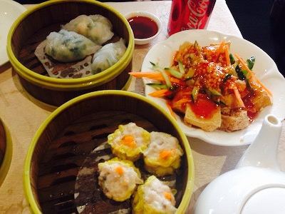 - 鲜虾、饺子、小笼包、炸豆腐、鸡脚、烤鸭、炸大虾、炸鱿鱼、芝麻球、点心料理,你必须尝试一下每样东西