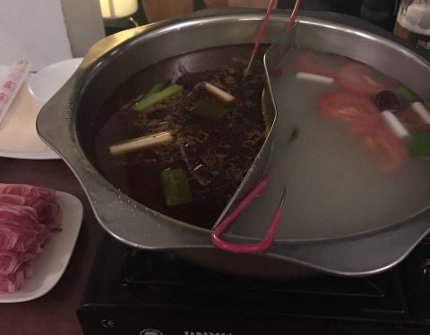 这家在国外看来,算是一家很地道的中国餐馆了,我点了一份火锅,配了些素菜、猪肉、鸡翅,还有一些海鲜。我是和朋友在这里聚餐,所以份量点得有点多呵。口味真的很棒,看,都快解决完了。很正宗的火锅味,还配了...