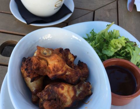 一般,两个人的消费60英镑,凯撒沙拉(有鱼有鸡,小鱼很腥盖了凯撒酱的味道,鸡肉烤得非常干,黑色的地方还有点苦,club sandwich,面包干干的,因为英式培根是比较咸的,而且是厚切培根,而且几块连在重叠一起,所以会突然间某一块特别咸,某个地方是干没有味道的三文治,本人并不推荐。我们还点了cream tea,司康饼还行,果酱是凝固版的瓶装果酱,所以也不推荐了,倒是有个甜点上面是冰淇淋旁边是黑莓红莓围绕着,倒是想尝试的,但是吃不下了就没点了,服务人员很好,BBQ鸡翅很不错