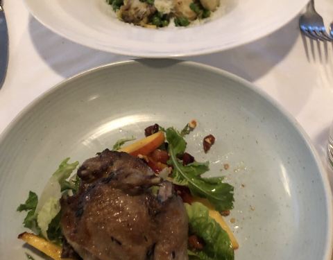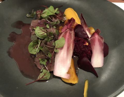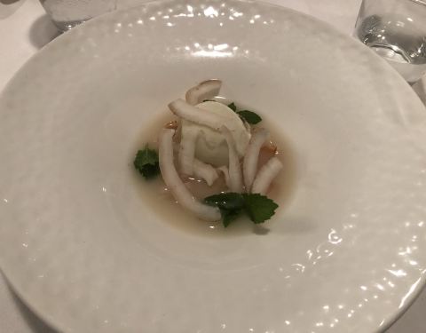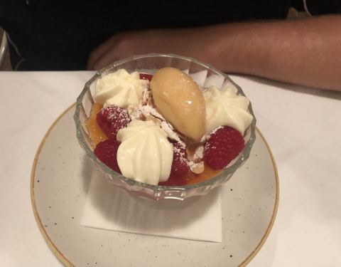 我是第一个定的,给我的位置竟然还不是靠窗的,而且我的桌子的跷脚的,菜量真的很少,味道还行,就是性价比不是那么高,偶尔吃一次可以了,我的甜品简直就是在吃dove肥皂,前菜还是不错的,鹌鹑ok,很嫩,羊肉有点太生,然后就是时间等好久,一定要定位。