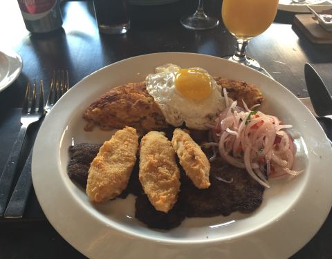 Degustación de tacu tacu con pisco sour catedral. Rico!
