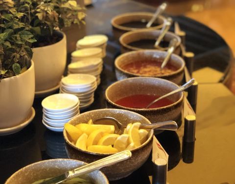 香荟全天候餐厅位于酒店的25楼,视野极好。餐厅提供自助餐,种类丰富,中国和东南亚美食汇、欧洲特色美食、日本料理、香溢烧烤,及精致甜点,满足食客不同需求。“现点现做,即点即食”的各式料理很好的保证了美食的品质,现场驻唱活跃了气氛。