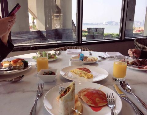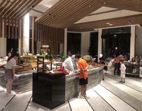 和朋友一起来的,虽然酒店位置有点偏但是环境好。餐厅在一楼能看到日月贝和港珠澳大桥感觉一边吃饭一边看着这样的环境非常悦目。菜品种类丰富,有我最爱的甜品和寿司,海鲜也非常的新鲜。服务也非常周到,非常满意的一次消费