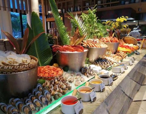 全日西餐厅的自助早餐及海鲜自助午、晚餐很不错的地方。食材新鲜,品种丰富,口味不错。各式小吃、美点也很丰富,酒水也不错,环境很美,具有东南亚风格,是一段极具风情的美食享受。午餐230元左右,感觉在这里与朋友聚会很享受与轻松。