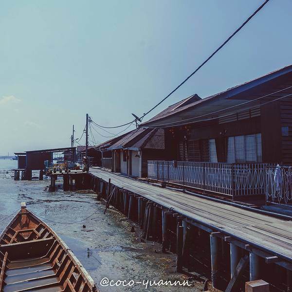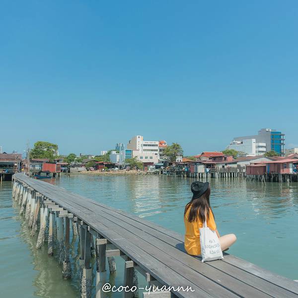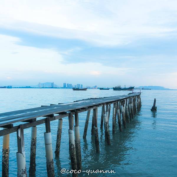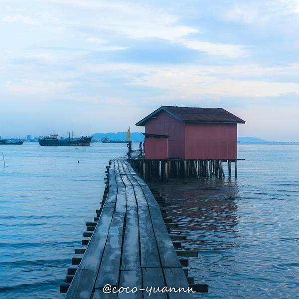 #点评召集令#姓氏桥就在乔治市街头艺术区附近,步行不用10分钟可以到达。 以姓氏来划分桥上住宅,原来有9座桥,却碍于城市发展,以有两座桥被拆除, 在姓氏桥中,以姓周桥规模最大。侨民绝大部门来自于福建一带。 而我想重点介绍的是姓陈桥。在这看到的这么多船,一定以为这里是个渔港,这里的侨民是渔民吧。 其实不然。 这些船其实是接驳船。 以前那些大的渡轮没法停泊靠岸,这些船是接那些轮船上的水手上岸的。 这些接驳船的人就在码头等着,看到灯亮,就会开船去把水手接上来。 有时候遇到下雨天或太夜,慢慢的就建宵灯,在后者就演变成屋子。细心留意的话,会发现,这些桥上人家,他们的桥头都会有庙, 有的桥尾会有庙,那是妈祖庙。(如上图红色屋子)这里的人流相对少很多。 陈桥的妈阁庙(也就是上面第三张图中的红色小屋)还有长桥都很上镜。 我们拍了无敌多照片。观赏并拍摄完毕,往回走的时候, 在入口不远处有卖水果沙冰的档主。 热情的跟我们打招呼:“你好,要买水果沙冰吗,很好喝的!” 我:“多少钱啊?” 老板:“3马币一杯” 我:“5马币2杯可以吗?”(抱着试一试的态度砍价,没想到老板却答应了。) 老板:“可以啊。”给了钱后,我们拿着沙冰在拍照。 其中有一杯的盖子盖不住,老板很热心的帮我们重新换了一个盖子。 并且在听说我们明天早上想过来拍日出的时候,老板说可以交代开门的伯伯提早过来开门,让我们进去拍日出。(早上开门时间是9:00) 突然有种受宠若惊的感觉,连翻谢过老板后,就道别了。在槟城除了咖啡厅,少有发现水果沙冰的地方,如果来到了姓陈桥,不防买杯沙冰,一边喝一边逛姓陈桥。隔天早上,我们7点左右到的姓陈桥,然而天公不作美。 昨夜下了一宿的雨,今早怕是看不到日出了,桥面仍湿哒哒的。 雨后的日出,怕是拍不到咸蛋黄了,只能拍拍桥咯。