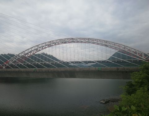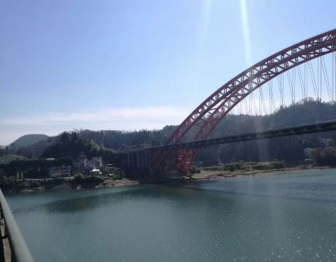 介绍中定位的地址不太准确。照片中的彩虹桥是高速公路桥,斜拉钢索桥是省道公路桥,双桥离的很近,从太平湖面跨过,很美丽也很壮观。