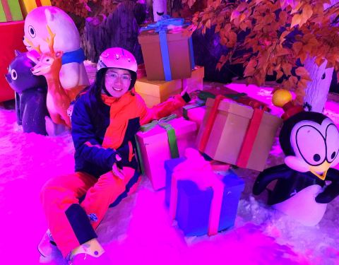 室内没那么冷,穿着景区提供的雪服,雪软,厚,摔倒也不疼,比起北方的干硬雪地体验更好