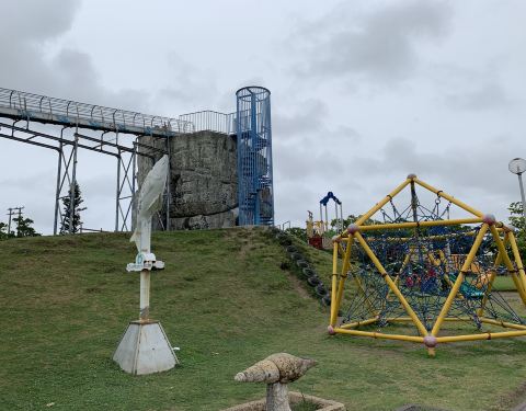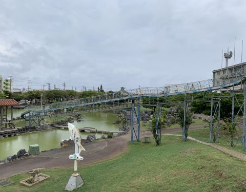 西崎亲水运动公园是个免费的儿童乐园。由那霸旭桥巴士总站乘坐55路、98路坐到アウトレットモールあしびなー前(奥特莱斯)站下,成人410日元1人,步行2公里约26分钟可达,或者从奥特莱斯打的去公园只需起步费550日元。可以先去公园玩,再逛奥特莱斯。 公园内有网红滚轮滑梯,特色是从湖面飞驰而过,终点在湖中心的小岛上。滚轮滑梯记得带滑力宝,滑的速度加快,屁股还不会磨疼。园内还有攀爬架和各种小型滑梯。在滚轮滑梯的最高处能看见棒球场内好多人在打棒球,视野很好,离机场也近,还能看飞机起降,往西看能看见大海。非常推荐带娃的家长来玩。附55路、98路公交车从奥特莱斯返回那霸方向,周六,周日时刻表。