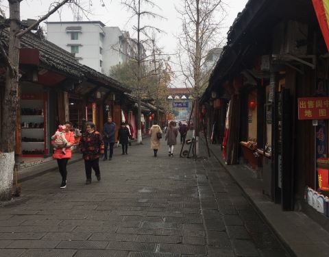 最突出的标志,当然是横跨马路,色彩鲜艳的大型牌坊了。这里处于古城与老城社区的交界,生活气息浓郁。牌坊两侧的横楣上刻有古阆州4位科举状元的名字,此地果然是人杰地灵,深有文化底蕴。穿过牌坊折向盐市口街下...