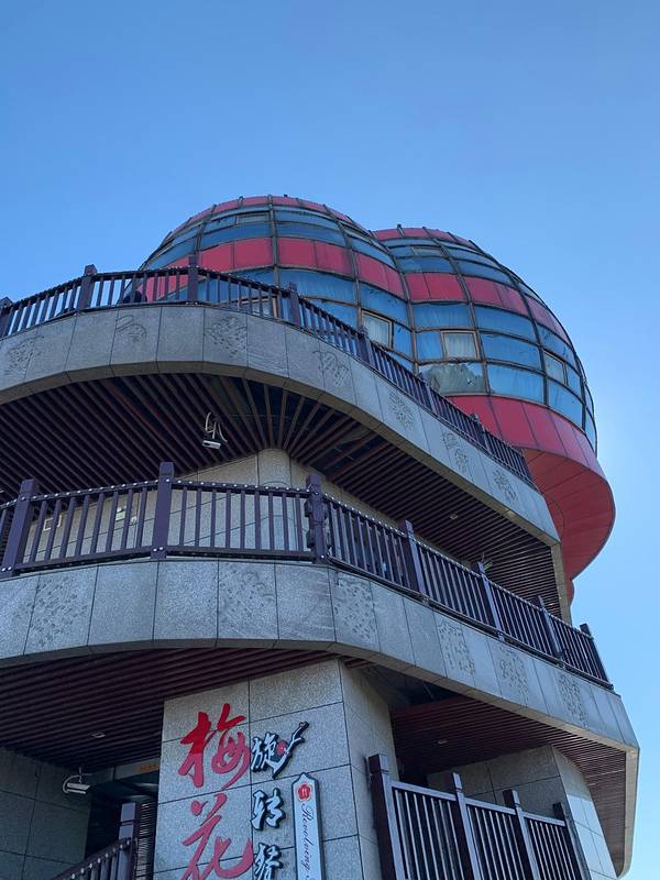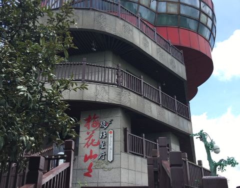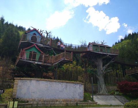 建议自驾前往 虽然弯多 有段烂坑路 还是建议自驾 门票20元/人(包含往返观光车费) 停车费10元 比坐缆车上来划算多了(缆车全程往返128元 除非你想体验最长缆车 自驾来就感觉很值了)开车到梅花坪停车场 下车坐观光车玩耍 然后再开车到游乐场那边玩 梅花坪上面风光还是可以的 天气晴朗 登高望远 心情舒畅 还有一些特色建筑 拍照很好看 山的另一边有玻璃桥 滑草 鬼屋这些