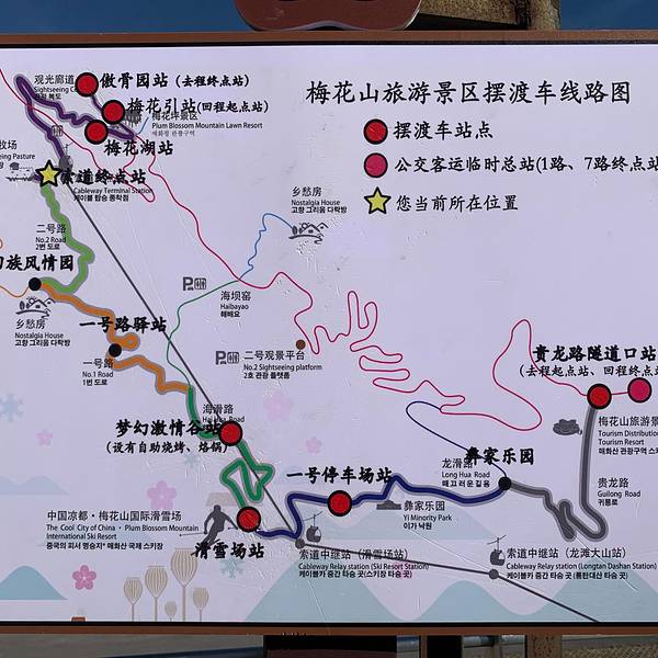 缆车全程往返128元 除非你想体验最长缆车 自驾来就感觉很值了)开车到梅花坪停车场 下车坐观光车玩耍