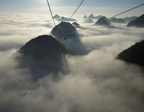 天气 关注 都没啥用 山下面 太阳 山上却在下雨。坐索道 一个来回 就完事了 里面 有点密闭。建议 有高血压 恐高症 或者有点感冒的 朋友 不要 坐这索道。 超级无聊。 不过 风景不错 里面的项目都没有玩