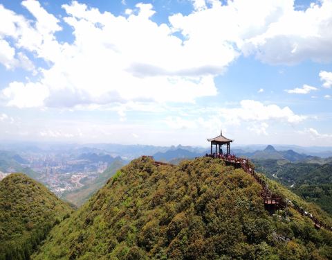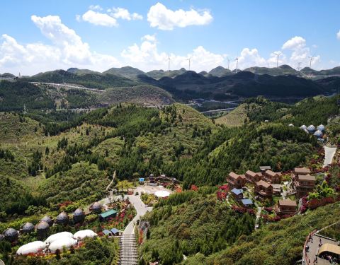 梅花山是一个很大的山区旅游综合体,离六盘水城区有20多公里的车程,自驾需要40分钟左右。也有索道可以乘坐,索道站在六盘水师范学院朝阳校区背后,往返票价128元。自驾过去的话,门票免费。其中梅花山旅游综合体内的梅花山度假公园有很多不同类型的高端度假酒店,各有特色,旺季一定要提前至少一周预订,临时订房肯定是订不上的。度假公园内的观景台能眺望远处的六盘水市区,建议在晴好的下午登高望远,有飞机俯视航拍的感觉。不过,早上会有雾气,影响视线。蓝色的天空在天无三日晴的贵州是奢侈的,但是因为梅花山在贵州的西面,靠近云南,晴好的天气相对来说会更多。景区内各景点之间相隔较远,建议自驾或者乘坐观光车,20元一个人。可以带你到各处景点,免去步行之苦。冬天来到梅花山一定不能错过滑雪场,贵州境内滑雪场不多,梅花山算是很有名气的一个。