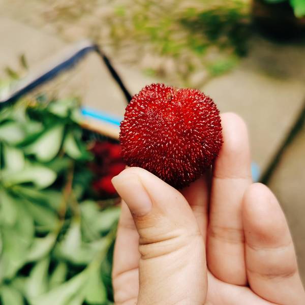 新鲜杨梅红润润的,个头饱满瞧这个头,是不是饱满,满满汁水。小伙伴们采了满满的一大筐,幸福满满的小伙伴们一下午忙碌收获满满,