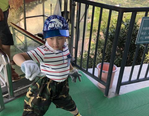 风景很好,沿途都是植被,还有语音播报,山上石阶修的整齐也干净,沿途不少清洁人员,为了降低爬山坡度大概值得玩一次,风景很好,沿途都是植被,还有语音播报,山上石阶修的整齐也干净,沿途不少清洁人员,为了降低爬山坡度大概,所以上山是相当于人肉盘山公路,穿过两座拉索桥,感觉爬了无数座山。 带着孩子,没有玩滑...值得玩一次,风景很好,沿途都是植被,还有语音播报,山上石阶修的整齐也干净,沿途不少清洁人员,为了降低爬山坡度大概,所以上山是相当于人肉盘山公路,穿过两座拉索桥,感觉爬了无数座山。 带着孩子,没有玩滑索,门票80包括上山和玻璃栈道,最后玻璃滑索(自费40)蛮好玩的,同样因为照顾孩子的关系,不敢速度太快,未尽兴,孩子说下次再来玩玻璃高级滑滑梯 希望能够在沿途的指示牌上,加上已经行走距离以及仍需行走距离。不然茫茫大山,不是周末或者节假日,有的会信心全无……本次出游感激清洁人员和山上那位卖西瓜和矿泉水的大姐,简直是救命甘霖!!!话说,孩子不太能领物滑梯动作概要,手套真的臭臭 展开