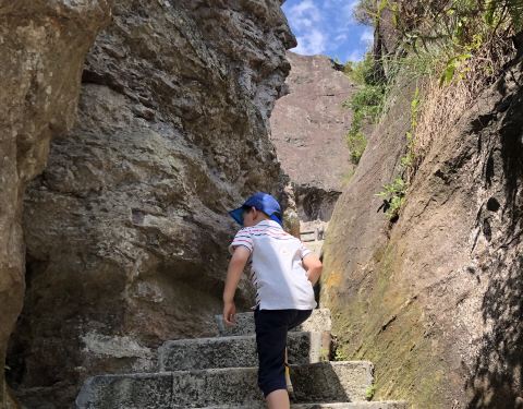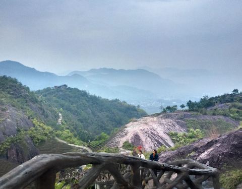 真的超级好玩。山不高,但是要翻好几个山头,步行道铺设的很好,爬一段会有休息的平路或者亭子。山顶风景很美。有山有水有栈道。尤其玻璃栈道和玻璃滑道,简直好玩到飞起!!