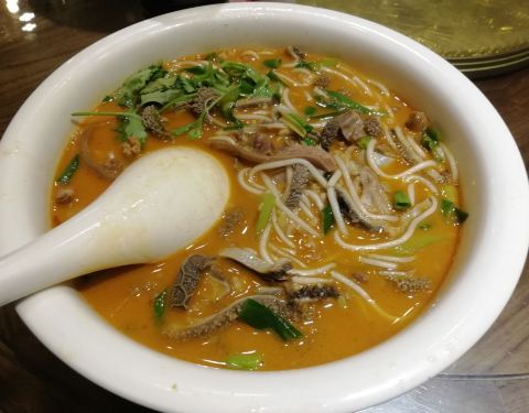 店面临街,不大,进去上到二楼才见别有洞天。饭点儿上,坐的满满当当。装修很有当地特色,悬挂的玉米看了下,是真的!饭菜是当地特色,味道不错的。