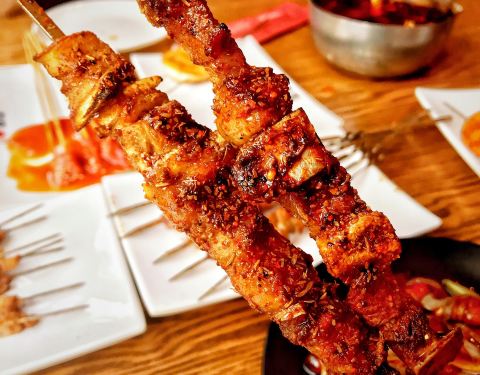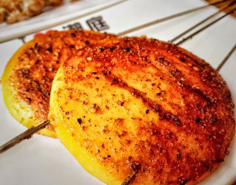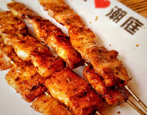 和朋友约来吃饭,以前来过这里,觉得烤猪五花特别好吃,这次中午来的,上菜速度蛮快的,不过天气冷了,烤串都得趁热吃,不然一会儿就变得很凉,猪五花依旧美味,最近猪肉涨价了,串4块一串,还算挺合适的。烤饼子火候掌握不错,味道也好,香香的,配串一绝~
