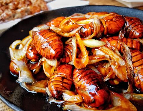 最近和朋友吃饭,总是避免不了小烧烤小海鲜小啤酒的,这家也是朋友选的地儿,头一次来,第一印象是充满网红性质的海鲜烧烤。 女士洗手间是花了心思的,营造了化妆间的氛围,各种软装适合拍照打卡,和某鞋相比就是公用化妆品少了点。 点了不少这里的特色菜,没想到口味都还很不错,记忆犹新的是各式烤串,烤的都恰到好处,外焦里嫩,猪五花系列强烈推荐~ 拌鸡架味道太赞了!如果鸡架肉再多一些就更完美了,但是口味秒杀我吃过的其他鸡架类,甜鲜口笔芯。 烤菠萝也是这里的特色,用的是凤梨吧,又甜又多汁,也很大片很厚实,女士应该都会喜欢~