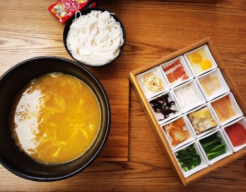 当天去店上人超多🙆 不过服务很贴心 这个汤真的超好喝✨ 与外面的过桥米线果然不一样🔥 点了经典款的过桥米线 米线也软软的 吃的超级饱💥💥