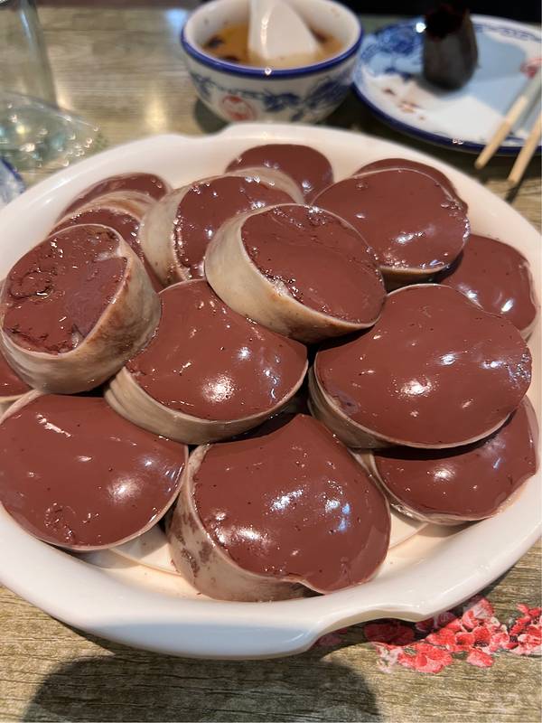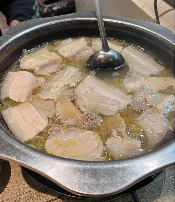 老韩甸杀猪菜在哈尔滨可是有年头了,开了好多家分店,这次想吃了开车去的是双城堡旭大道店(外地来的朋友可以开导航啊,直接就导去了)从进门开始我们大东北人民的热情就凸显出来,服务员一路问好到你坐下,服务绝对是热情到位。作为杀猪菜最具代表性的当属,酸菜白肉锅,血肠,拆骨肉,苦肠,护心肉,肠灌肉。酸菜白肉锅汤清肉不腻,沾着蒜泥辣椒油酱油烤醋那叫一个味儿美。每次吃杀猪菜都会让我情不自禁的想起小时候在乡村腊月里吃杀猪菜的情景。小时候,杀猪菜可是上讲究的,只有每年腊月里快过年的时候乡村才杀猪,每家杀猪都会请亲朋好友和村子里人来吃杀猪菜,喝杀猪酒,那一桌桌杀猪菜真是美味佳肴哦!酸菜锅里肉香气四溢。酸菜脆脆的没有那种很冲的酸味,酒是从供销社打来的散装白酒,一大壶边喝边倒,热情好客的主人又劝酒又劝菜。来老韩甸吃杀猪菜吃的不仅美味儿,还有吃的是回忆。可能对于南方朋友来说来东北知道烧烤,铁锅炖,但是杀猪菜绝对是你们不能错过的一道东北美食。
