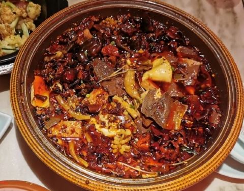 点的点的菜品,都不错,口味很好。店面装修考究,传统毛血旺,内容丰富,香辣好吃