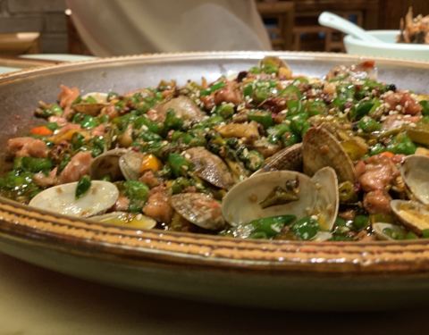 [服务]服务态度真的不错呀,端茶倒水很积极。可能是现在的文化,客人到了要给大家打气[微笑] [环境]中式装修不错,花了很多心思,而且很宽敞,很赞 「会跳舞的蚂蚁上树」个人觉得有点清淡,几乎没有动,可能外...
