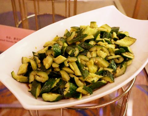 在钻石会议室旁边的自助餐厅,因为这次研讨会日方来了十多位,所以菜品结合了日本人的口味,有刺身、寿司等日料,毕竟多数还是中国人,还有炒米饭、麻婆豆腐等中式料理。有醋溜拍黄瓜、地中海面条沙拉配罗勒酱汁...