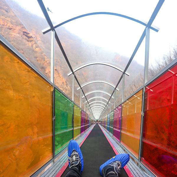 要说还有特别一点的地方就是这三泉湖玻璃滑道了,它采用双人双排设计,全长280米,落差达108米...再接着,我们就来到了整个伏羲山度假景区面积最大的三泉湖景区,面积约10平方公里,由玫瑰岭、凤凰天桥、栖凤峪、三泉湖和盘龙古镇休闲区以及玻璃滑道、管轨式滑道等游乐项目组成。玫瑰岭是在古山寨贾家寨遗址基...再接着,我们就来到了整个伏羲山度假景区面积最大的三泉湖景区,面积约10平方公里,由玫瑰岭、凤凰天桥、栖凤峪、三泉湖和盘龙古镇休闲区以及玻璃滑道、管轨式滑道等游乐项目组成。玫瑰岭是在古山寨贾家寨遗址基础上开发建设而成,区域面积2平方公里,因漫山遍野种植各色玫瑰花卉而得名。走进玫瑰岭登高远望,看日出观云海,红石林壮观美景尽收眼底。凤凰天桥为中原地区首座悬索玻璃吊桥,全长210米,桥面采用高强度钢化玻璃铺设而成,是连接玫瑰岭与栖凤峪的必经之处。要说还有特别一点的地方就是这三泉湖玻璃滑道了,它采用双人双排设计,全长280米,落差达108米,遇自然景点和树木盘绕而行,底面和两侧都是透明玻璃材质,整个滑行过程约6分钟,是景区内供游客游玩的项目之一,可以享受刺激的尖叫声。栖凤峪因山的形状如一只展翅欲飞的凤凰而得名,峡谷全长4公里,峡谷群山环绕,壑立千仞。峡谷内绿荫蔽日,巨石嶙峋,飞瀑流泉,珍禽鸣唱,丹岩与绿树交相辉映汇成浓淡相宜的水墨丹青画廊。除此之外,三泉湖还有两个非常壮观又很少见的娱乐项目: