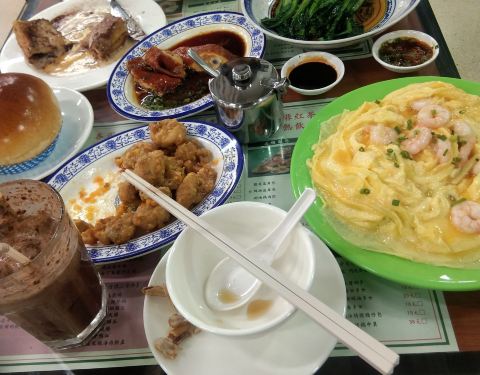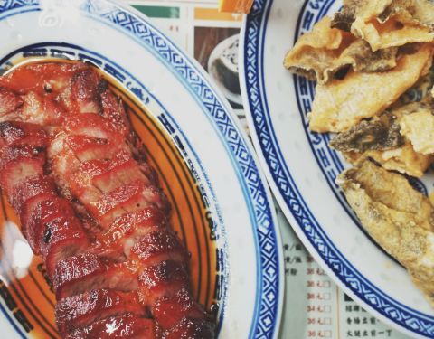 终于等到你,还好我没放弃… 之前路过一直在装修,总算是开门营业啦! 从此人民广场这里又多了一家我爱的茶餐厅…[爱心] 环境是走心的港风,简简单单的, 就像香港街头随处的一家… 菜单正反两面,点单也要讲究高效率! 冻奶茶,喜欢是因为冰块也是奶茶做的, 很用心,冰化了味道也不会淡… 咸蛋黄鱼皮,心头好, 炸鱼皮配上我最爱的咸蛋黄,绝配啊, 当作小食吃个嘣脆,咔嚓咔嚓… 滑蛋炒虾仁,颜值很高哎, 虾仁大个Q弹,滑蛋嫩嫩的,吹弹可破又恰到好处! 叉烧&烧肉,可以选择自己拼, 单点的话量真的很大,超足的, 叉烧肥瘦刚好,酱汁甜蜜,烧肉喜欢,蘸酱美味! 菠萝咕咾肉,传统的粤菜, 也很考验水准,喜欢里面的菠萝,酸甜开胃… 咖椰鲜油多士,叠叠高造型, 一口奶香浓郁,想起了在新加坡吃的味道… 杨枝甘露&椰汁黑糯米&蛋白杏仁露, 爱吃甜品的我们不纠结,每款来一份, 黑糯米浓厚,杏仁露清爽,杨枝甘露诱人, 各有千秋,看自己喜欢啦,反正我都爱!