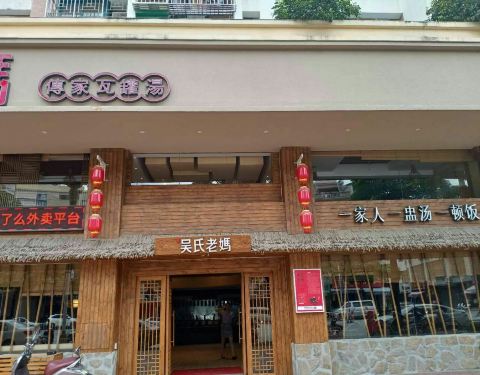 云霄也开了一家吴氏老妈,就在将军大道上,在姑奶奶隔壁,姑奶奶味道很不错,就想试试吴氏老妈的看看。 [环境]店里环境很不错,古风古风的。店里面也有自助餐可拿,这点还是可以的,有发现点菜方式很特别,能看到实物,这点很不错。 关于味道,还行吧。 我点的是莲子猪肚汤,猪肚有点硬,也有点腥吧,家人说其他菜口味也偏谈了点,而且点了泡菜鱼,鱼是草鱼,草鱼刺多,不喜欢,建议换刺少得鱼。性价比低有点小贵。应该不会来第二次了。呵呵