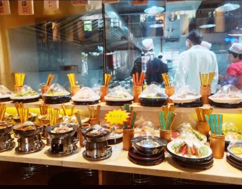 店里面也有自助餐可拿,这点还是可以的,有发现点菜方式很特别,能看到实物,这点很不错。性价比低有点小贵