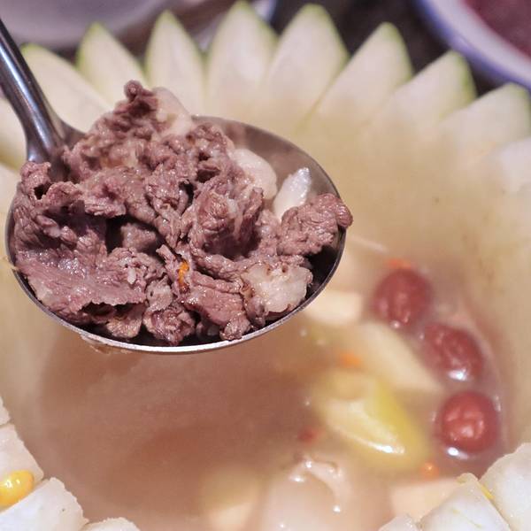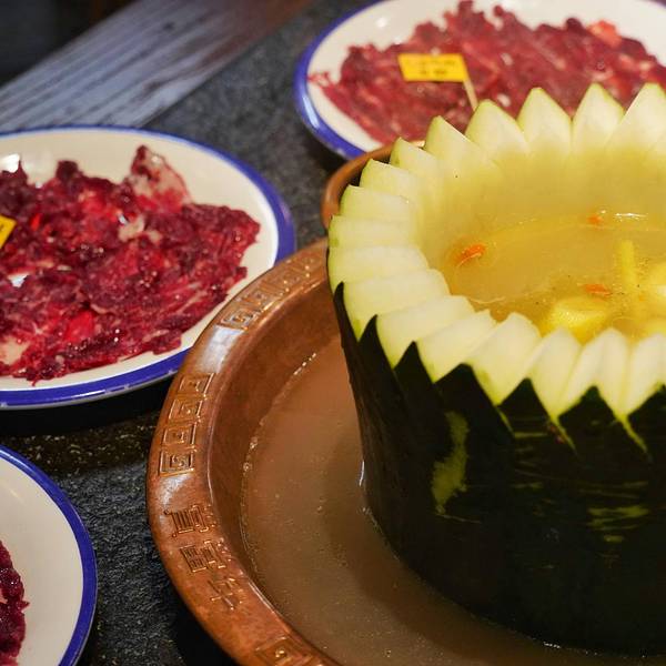 - 值得一提的是吃完全部肉品,冬瓜内壁的肉也熟了,服务员会过来切冬瓜,此时的瓜肉松软入味,特别好吃