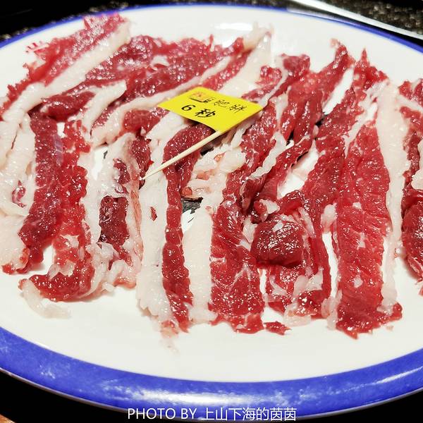 薄薄的牛肉片色泽鲜红光亮、肉纹饱满、脂肪和肉质不松散,脂肪部分呈乳白色。推荐菜品:胸口油(30元)