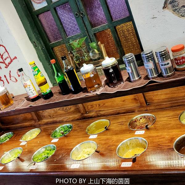 打卡这家怀旧复古风的牛肉火锅店 [环境]招牌是大上海的灯牌风,远远夺人眼球再来一进门就是爸爸年代的摩托车️,和小卖部,有趣的是整个店都有浓浓的顺德旧时生活气息,好像骑楼,信报箱,电灯柱,牛皮癣等等,看...打卡这家怀旧复古风的牛肉火锅店 [环境]招牌是大上海的灯牌风,远远夺人眼球再来一进门就是爸爸年代的摩托车️,和小卖部,有趣的是整个店都有浓浓的顺德旧时生活气息,好像骑楼,信报箱,电灯柱,牛皮癣等等,看出老板花了心思装修,很符合店名,赏当年(想当年)粤语发音相同 「鸳鸯锅底」 点了鸳鸯锅底,考虑到有不吃辣的小伙伴,鸳鸯锅是不错的选择,清汤锅是玉米,牛腩,党参,冬瓜等熬制的高汤,滋补不上火。辣锅是很多香料,说不出名字有麻辣的味道,吃牛肉爽歪歪。 「牛边花」 店员小姐推荐这个牛边花,具体是哪个部位说不出来,是顺德水牛的肉,比较嫩,不干材,而且带有一点点脂肪但不腻,推荐[调皮] 「牛百叶」 这个有点踩雷,因为我比较怕不熟,涮的时间有点长,就韧了,咬不动应该是真牛百叶,市面很多人工做的 「牛蛙」 牛蛙大只结实,肉质鲜美,就是分量有点少,不够吃[憨笑]推荐推荐 「猪油捞饭」 这个应该是蒸饭,米饭粒粒分明,我喜欢吃硬的饭,中间的猪肉没有油腻感,反而像酱油,很好吃,可以吃2碗,推荐 这里的味料是自助的,超爱那个芹菜丁[调皮] 临走还可以拿一条冰棍解解口中的余味,重点冰棍免费提供