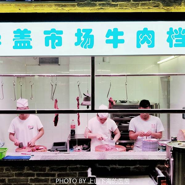 想当年,70、80年代的顺德是什么样的呢?晚上去的这家赏当年牛肉鲜生火锅店,是顺德的网红店,从一进门就可以开始拍拍拍了。峰进餐厅、金龙饭店、大良供销社以及录音机、卡带各种老古董带我们穿越到旧时光。“赏当年”主打新鲜牛肉火锅,还是顺德本土少有的兼备水牛和黄牛肉的火锅店。 透明的开放厨房可以看到厨师将牛肉一一切好、摆盘。不同的肉会有不同的分解,精确到纹理的厚度,才能保证肉的口感。每盘肉上都会标好涮几秒,无需太久,就能吃到新鲜的牛肉啦。牛肉那种鲜嫩紧实感,会在口腔中打转许久,那股浓厚的牛味,狂奔在味蕾之上,让人不禁闭上眼,享受起这种少有的满足感。赏当年每天早中晚餐分三批新鲜牛肉到店,牛肉从宰杀到上桌,时间控制在三个小时以内,保证你吃到的是最新鲜、最正宗的牛肉。