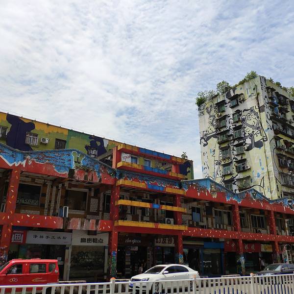 “老街”位于重庆四川美术学院虎溪校区南入口的东侧。南临城市道路,北面朝向学院宿舍区。这是一条300米长的狭窄地带,是集餐饮、酒吧、商店、画廊、艺术工作室等功能为一体的步行商业街。“坦克仓库艺术中心”坐落于重庆四川美术学院黄桷坪校区,是以拓展和深化中国当代艺术体制改革而首创的一个学术性的艺术交流机构,目的是建立有益的学术交流机制,更好地把握国际和国内当代艺术的发展脉络,达建国际的艺术交流和艺术门类间交流的平台,实现当代艺术同受众的联姻。黄桷坪涂鸦艺术街位于重庆九龙坡区黄桷坪辖区,起于黄桷坪铁路医院,止于501艺术库,全长1.25公里,总面积约5万平方米,是当今中国乃至世界最大的涂鸦艺术作品。