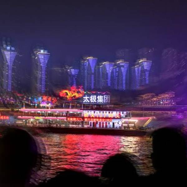 重庆夜景还是不错的,特别在靠近洪崖洞旁边游轮会停留片刻供大家拍照,比地面拍的好看很多取票还是挺方便,就是朝天系坐的游客太多,站着排队都要一个多小时太累,旁边码头的交运邮轮貌似都不用排队,虽然轮船可能略小,但也就观光50分钟左右,建议还是选择交运轻松又省时间。重庆夜景还是不错的,特别...取票还是挺方便,就是朝天系坐的游客太多,站着排队都要一个多小时太累,旁边码头的交运邮轮貌似都不用排队,虽然轮船可能略小,但也就观光50分钟左右,建议还是选择交运轻松又省时间。重庆夜景还是不错的,特别在靠近洪崖洞旁边游轮会停留片刻供大家拍照,比地面拍的好看很多。 展开